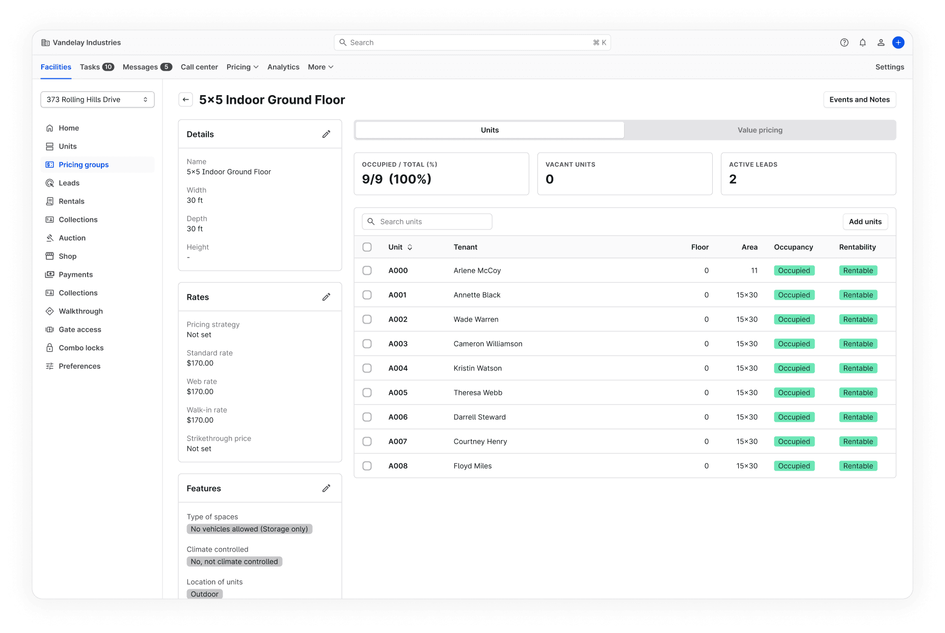 He's beginning to leverage Cubby's new pricing functionality to understand his competition's rates, inform street rate adjustments, and automate tenant rate increase communications.